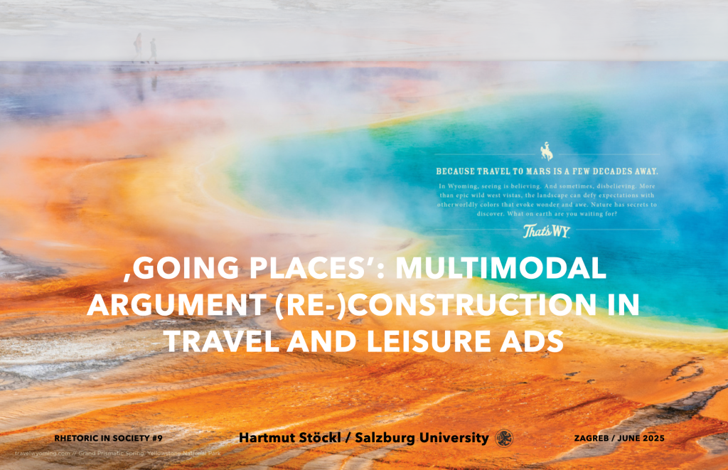 „The talk follows on from some of my recent work in multimodal argumentation (on social advertising). My main concern is with the method of reconstructing multimodal arguments in public discourse and the role of multimodal coherence building in argumentation generally.“ (Slide Notes, Hartmut Stöckl, June 2025)